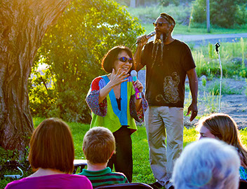 Two nationally acclaimed storytellers join forces to help communities celebrate diversity of cultures through world folktales, original narratives, and music. Eshu, a winner of the Storytelling World Award, specializes in tales and songs from Africa and the Diaspora, leavened with humor and mystery. Parents’ Choice Award winner Motoko blends her hilarious and poignant tales with exquisite mime movements. With nearly 50 years of combined experiences performing in schools, libraries, theaters, and festivals, Motoko and Eshu offer a unique collaboration between cultures, entertaining audiences of all ages.